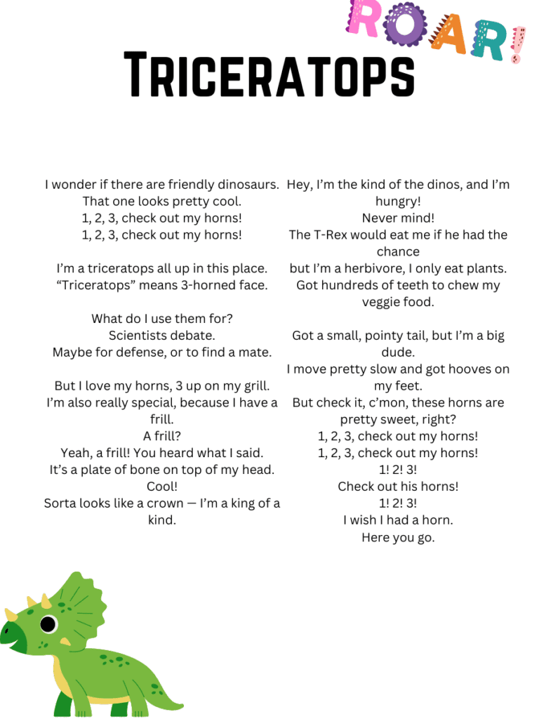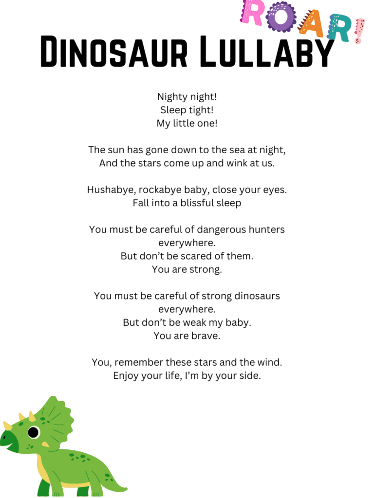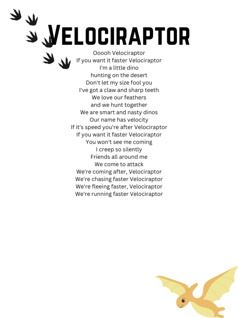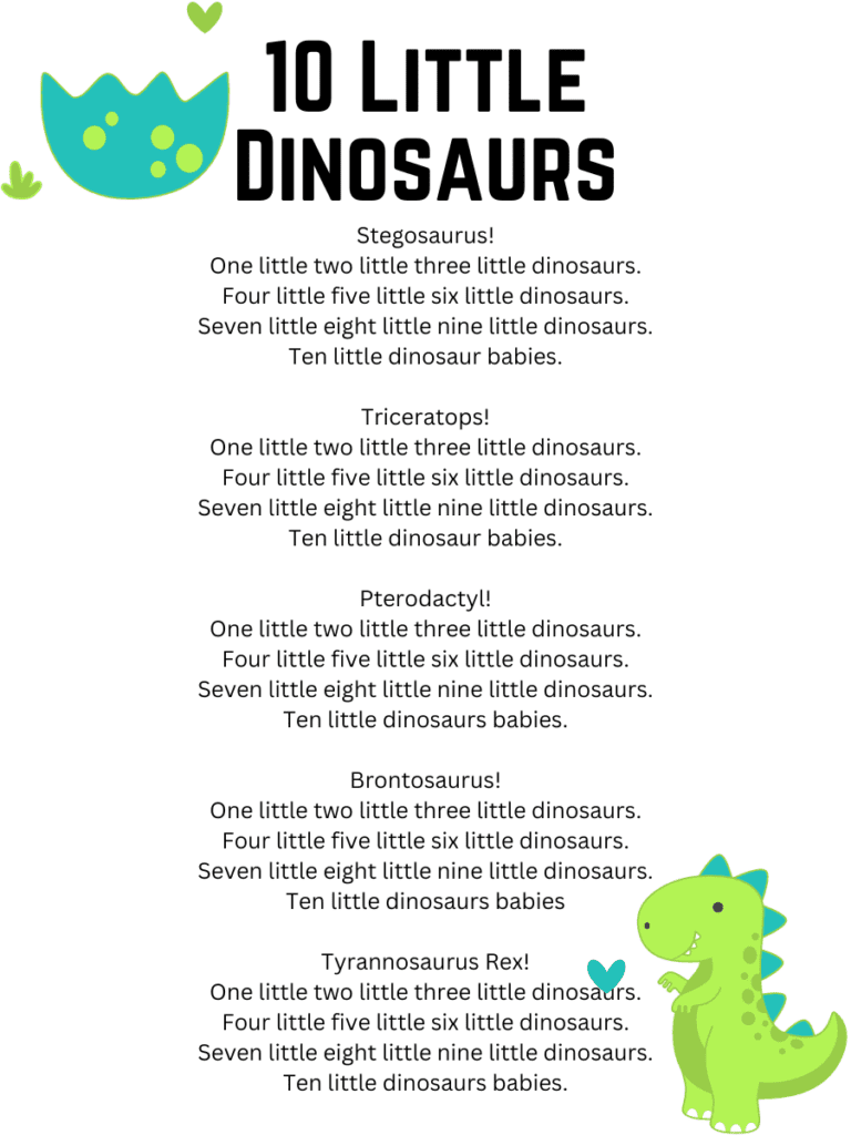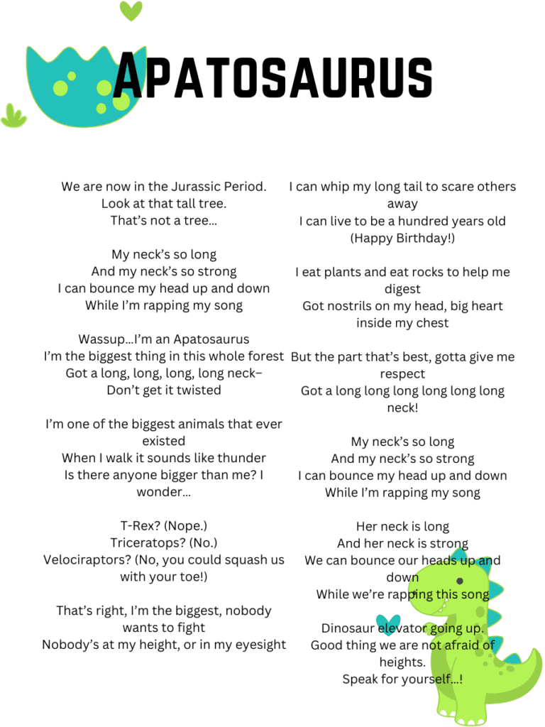 Dinosaur Songs and Lyrics Printables For Kids